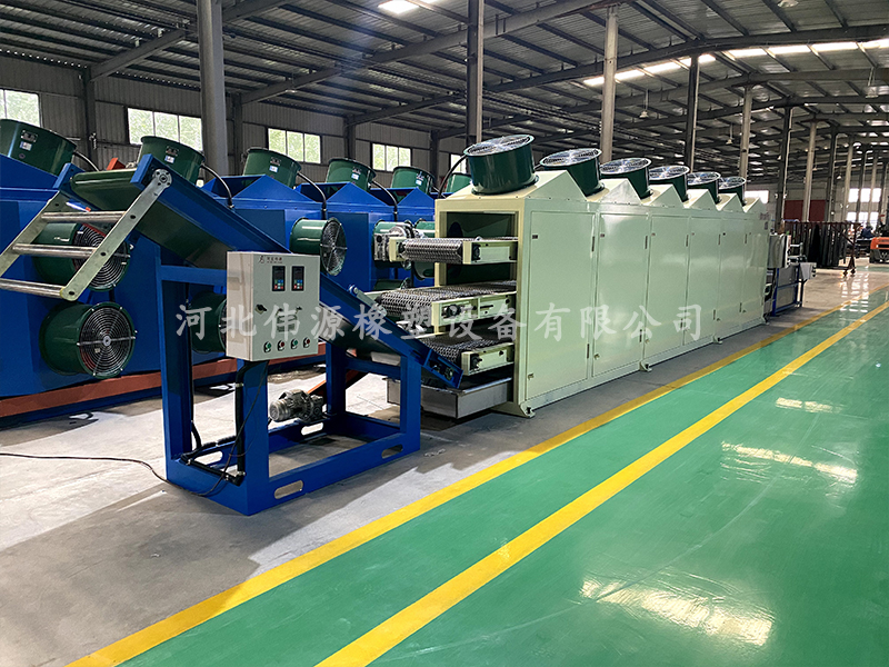橡膠產(chǎn)品在生產(chǎn)的時候大多數(shù)都是通過橡膠擠出機來進行擠出成型的。而在生產(chǎn)過程當(dāng)中由于不同的橡膠產(chǎn)品的性能不一樣,那么在生產(chǎn)的時候用到的橡膠配方就不一樣。橡膠通過密煉和開煉加工以后才可以利用橡膠擠出機來進行擠出成型。而在生產(chǎn)當(dāng)中橡膠片需要先儲存起來后再用橡膠擠出機來進行生產(chǎn),這樣可以保證有充足的橡膠來進行擠出成型。但是通過開煉的橡膠片是有粘度的,如果不進行冷卻的話把煉好的橡膠放在一塊會粘連到一塊,而在生產(chǎn)的時候我們用膠片的時候會不容易把膠片分開,而造成人工浪費。所以我們在煉好橡膠以后需要把膠片冷卻后再進行儲存。這樣我們就需要用到橡膠片冷卻機對橡膠進行加工處理了,橡膠片通過輸送機進入到冷卻機里面進行風(fēng)冷,然后再推送到托盤進行收放,這樣就可以把橡膠片很好的儲存起來了。河北偉源橡塑設(shè)備有限公司是專業(yè)生產(chǎn)擠出機的廠家,公司生產(chǎn)的設(shè)備有橡膠擠出機,塑料擠出機,密封條生產(chǎn)線等。有需要的朋友可以來公司進行考察參觀,也可以來電進行咨詢。